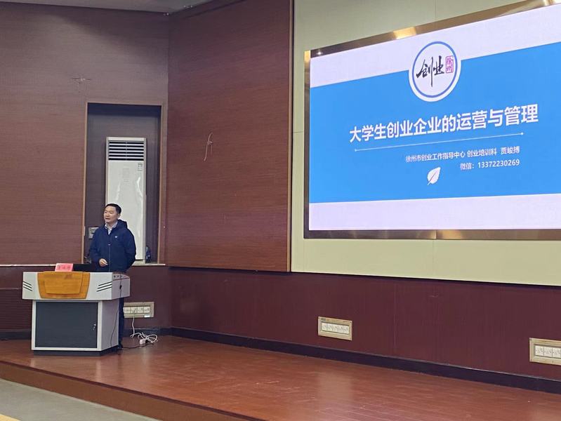 贾老师从创业企业的行业与产品、公司的设置、经济形式与项目选择、人力资源管理与融资等方面全方位解读了老员工在企业运营与管理过程中所能遇到的问题,并指出了应该如何启动危机管理去解决问题。贾老师引用很多知名企业家创业经历和一些大家所熟知的创业故事深入浅出地为同学展示了创业逻辑和创业规则,运用徐州市创业园所记录的真实数据为大家分析了老员工企业应怎样留住人才并将企业发展壮大。